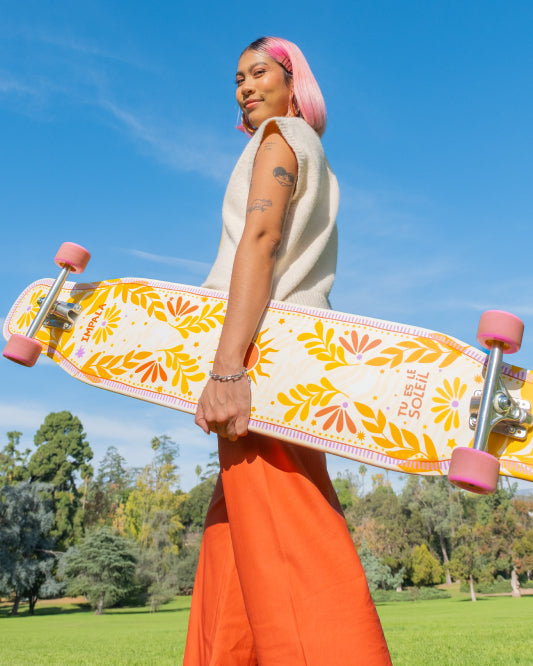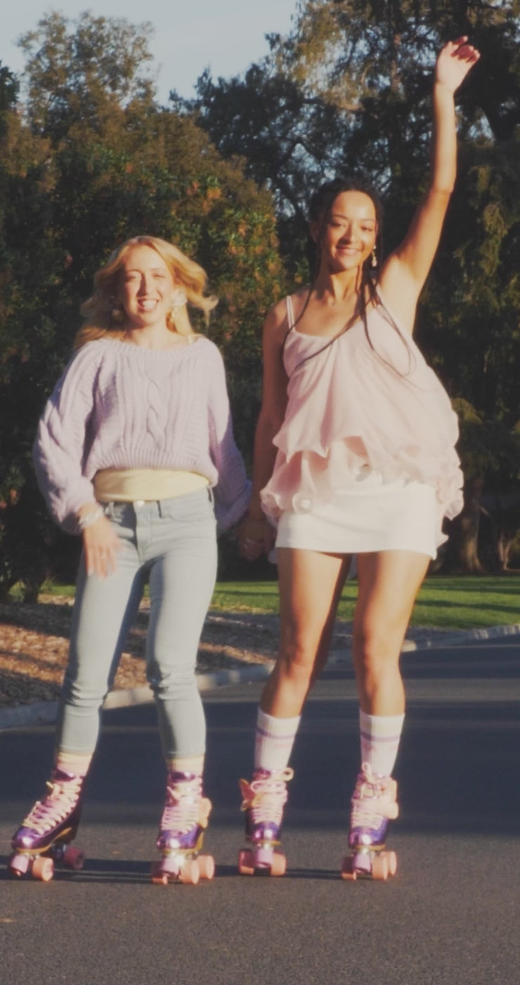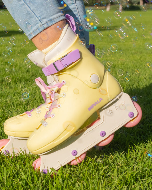Impala is for everyone – whether you’re into roller skating, inline skating, or skateboarding, it’s all about having fun! With a nostalgic throwback to the 70’s, 80’s and 90’s, Impala is bringing back the yesteryears of skate. Impala is driven by a team of girls with a passion for skating and it's our mission to help support a positive and encouraging community for skaters of all levels. Our range of recreational roller skates are made for fun! Featuring aluminum baseplate, colorful bushings and PU stoppers, soft urethane wheels, Impala’s pink ABEC 7 bearings, padded collar for comfort and metal speed lace eyelets. We also have a wide range of vegan friendly skates! Our roller skates are available in a range of multiple colors and prints, from our best-selling Black Holographic Roller Skates to our latest printed addition, the Tropicana. A few of your favorite Impala Roller Skates are even available in an extended US women's size 1-14 range – including Barbie Pink, Black, Camo, Marawa Gold, Tropicana, and Black Holographic. Stay safe with protective pads that match your favorite Impala Skates! We’ve also created custom-designed velcro skate protective gear to match your skates in Sky Blue, Pink, Black, Tropicana, Barbie Pink, Barbie Bright Yellow and for our Marawa Gold collaboration plus more! Designed for recreational use in and outdoors, our skates can be worn by everyone – check our size charts to convert for men’s and kid’s sizing. When purchasing your Impala roller skates, we recommend our size chart!