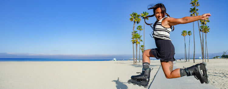 Impala is for everyone – whether you’re into roller skating, inline skating, or skateboarding, it’s all about having fun! With a nostalgic throwback to the 70’s, 80’s and 90’s, Impala is bringing back the yesteryears of skate. Impala is driven by a team of girls with a passion for skating and it's our mission to help support a positive and encouraging community for skaters of all levels. Our range of recreational roller skates are made for fun! Featuring aluminum baseplate, colorful bushings and PU stoppers, soft urethane wheels, Impala’s pink ABEC 7 bearings, padded collar for comfort and metal speed lace eyelets. We also have a wide range of vegan friendly skates! Our roller skates are available in a range of multiple colors and prints, from our best-selling Black Holographic Roller Skates to our latest printed addition, the Tropicana. A few of your favorite Impala Roller Skates are even available in an extended US women's size 1-14 range – including Barbie Pink, Black, Camo, Marawa Gold, Tropicana, and Black Holographic. Stay safe with protective pads that match your favorite Impala Skates! We’ve also created custom-designed velcro skate protective gear to match your skates in Sky Blue, Pink, Black, Tropicana, Barbie Pink, Barbie Bright Yellow and for our Marawa Gold collaboration plus more! Designed for recreational use in and outdoors, our skates can be worn by everyone – check our size charts to convert for men’s and kid’s sizing. When purchasing your Impala roller skates, we recommend our size chart!