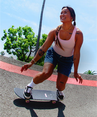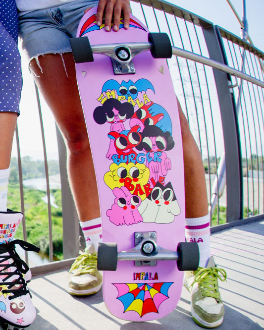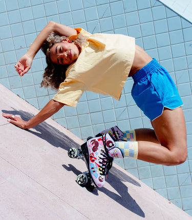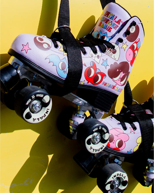 Impala is for everyone – whether you’re into roller skating, inline skating, or skateboarding, it’s all about having fun! With a nostalgic throwback to the 70’s, 80’s and 90’s, Impala is bringing back the yesteryears of skate. Impala is driven by a team of girls with a passion for skating and it's our mission to help support a positive and encouraging community for skaters of all levels. Our range of recreational roller skates are made for fun! Featuring aluminum baseplate, colorful bushings and PU stoppers, soft urethane wheels, Impala’s pink ABEC 7 bearings, padded collar for comfort and metal speed lace eyelets. We also have a wide range of vegan friendly skates! Our roller skates are available in a range of multiple colors and prints, from our best-selling Black Holographic Roller Skates to our latest printed addition, the Tropicana. A few of your favorite Impala Roller Skates are even available in an extended US women's size 1-14 range – including Barbie Pink, Black, Camo, Marawa Gold, Tropicana, and Black Holographic. Stay safe with protective pads that match your favorite Impala Skates! We’ve also created custom-designed velcro skate protective gear to match your skates in Sky Blue, Pink, Black, Tropicana, Barbie Pink, Barbie Bright Yellow and for our Marawa Gold collaboration plus more! Designed for recreational use in and outdoors, our skates can be worn by everyone – check our size charts to convert for men’s and kid’s sizing. When purchasing your Impala roller skates, we recommend our size chart!