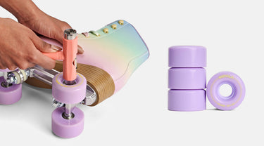 Our quad skate wheel packs include four 82A durometer urethane wheels and are 62mm x 33mm, meaning they are perfect for a smooth skating experience both indoors and outdoors (just remember - two packs are required for one pair of skates!). Our roller skate wheels are designed to fit our signature Impala ABEC 7 Pink Bearings and can be changed or adjusted using our Impala Pink Skate Tool.
